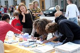 A la fin des deux jours d’activités, les pratiquants ont été très émus par le succès des événements. Un pratiquant occidental du nom de Mats a dit : « Les huit années de persécution des pratiquants du Falun Gong qui croient en Vérité, Compassion et Tolérance par le régime communiste chinois a permis aux gens du monde entier de voir les atrocités commises par le PCC. Pendant ces huit années les pratiquants du Falun Gong à travers le monde ont présenté la magnificence du Falun Gong et exposé les mensonges pervers du régime communiste chinois aux gens. A ce jour il y a eu vingt quatre millions de Chinois qui ont quitté le PCC et ses organisations affiliées quand ils ont réalisé sa nature perverse. De plus en plus de personnes trompées par le régime communiste chinois se sont éveillées. La force de la justice est devenue apparemment de plus en plus puissante. Nous devons persister et expliquer les faits sur la persécution à de plus en plus de personnes et leur révéler la nature perverse du PCC fin de sauver de plus en plus d’être qui ont été trompés par les mensonges du régime communiste chinois. »