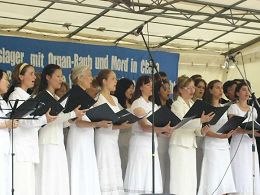 À la fin du relai, les organisateurs ont dressé une scène sur Breischeid Platz. La chorale "Venus pour vous" a chanté le "Chant des droits de l'homme " pour les participants.