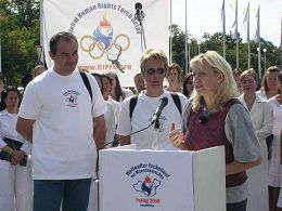 Professeur Geipel, une célèbre ancienne athlète de l'Allemagne et ambassadrice de la Flamme des droits de l'homme en Allemagne, a dit que seule une Chine libre devrait être autorisée à tenir les Olympiques.