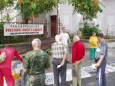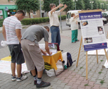 Peu après que les pratiquants aient mis en place leur stand d'information, les gens ont commencé à arriver pour signer la pétition appelant à la fin de la persécution. La pétition a été signée par environ 200 personnes à Velky Krtis. De jeunes enfants ont offert leur aide pour distribuer des imprimés et en peu de temps, beaucoup de passants avaient reçu l'information et nous répondaient en souriant "Merci je l'ai déjà !" Les enfants ont aussi voulu apprendre les cinq séries d'exercices du Falun Gong.