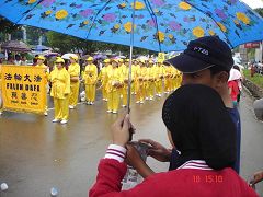 Les pratiquants ont distribué une grande quantité de matériaux d'informations et de fleurs de lotus durant le défilé. De nombreux spectateurs ont demandé l'information de contact et les adresses des points de pratique.