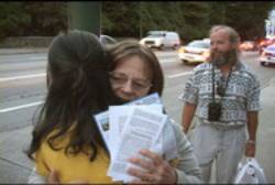 Un jour l’ancienne Sénatrice de Vancouver, Simma Holt, qui venait juste de rentrer d’Ottawa s’est rendue directement de l’aéroport au consulat. Elle a salué les pratiquants et a dit : « En Chine les pratiquants du Falun Gong sont assassinés. Leurs organes sont prélevés et même vendus. Cette atrocité a lieu de l’océan. Tous les Chinois d’outremer devraient venir soutenir les pratiquants. Toutes les organisations devraient aussi venir. Ensemble nous devrions faire appel pour la fin de la persécution. »