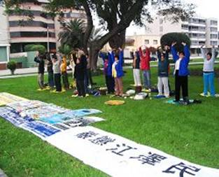 Le Falun Gong a été introduit publiquement au Pérou en 2000. Le 20 juillet de chaque année, les pratiquants du Pérou commémorent leur s compagnons de pratique morts en résultat de la persécution et appellent à la fin de la persécution.
