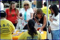 Beaucoups de visiteurs se sont présentés au stand du Falun Gong pour s'informer sur la pratique