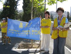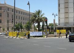 Le 19 juillet, les pratiquants israéliens ont tenu simultanément des activités pacifiques dans trois endroits de Jérusalem – devant le bureau du Premier Ministre, devant le Ministère des Affaires Etrangères et devant la Knesset (le Parlement israélien). Plus tard dans la journée, les pratiquants ont organisé une manifestation dans le parc central de Jérusalem, ils ont déployé des bannières, distribué des dépliants et aidé les gens à signer une pétition contre la persécution.