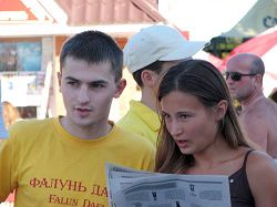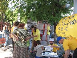 Les deux jours d’activités ont permis à de nombreuses personnes de voir les exercices du Falun Gong et d’être informées de la persécution. Les Ukrainiens ont été non seulement surpris mais aussi en colère en apprenant que les pratiquants du Falun Gong qui suivent les principes de Vérité, Compassion et Tolérance sont persécutés par le PCC depuis huit ans. Les uns après les autres ils ont signé la pétition condamnant la brutalité du PCC. En prenant des dépliants certains touristes ont dit qu’ils les passeront à leurs amis afin qu’ils puissent eux aussi être informés de la nature malfaisante du PCC.
