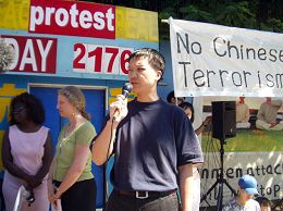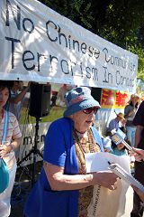 Un représentant de l'Association de Falun Dafa a lu un rapport au rassemblement. Le rapport disait que les assauts, l'intimidation et le harcèlement se sont souvent produits contre des pratiquants du Falun Gong au Canada au cours des dernières années. Ces incidents ont souvent été directement liés à l'ambassade et aux consulats chinois, ou aux résidants de la communauté qui étaient sous le contrôle direct des fonctionnaires chinois du parti communiste (PCC), ou ont été provoqués par la propagande de haine contre le Falun Gong propagée par les missions diplomatiques du PCC.