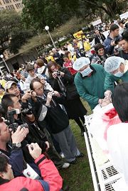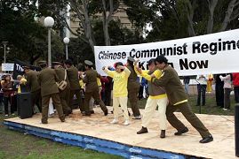 Parrainée par l'organisation, Free China et coparrainé par plus de 20 groupes, un rassemblement à grande échelle et un défilé avec le thème, « Le PCC doit immédiatement arrêter le massacre » s’est tenu le 6 septembre 2007 au centre-ville de Sydney. Un aspect clé du rassemblement et du défilé était une simulation exposant les prélèvements d’organes sur des pratiquants du Falun Gong encore vivants par le parti communiste chinois (PCC). De nombreux médias ont pris des photos de la simulation du début jusqu'à la fin.
