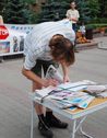 Des pratiquants ont aussi distribué du matériel d’information Avenue Kutuzov là où il y a de plus de touristes et de voitures. La plupart des gens ont accepté l’information en remerciant. Certains conducteurs klaxonnaient et s’approchaient des pratiquants pour prendre l’information et en particulier les DVD.