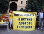 Le 25 août 2007, les pratiquants de Falun Gong ont tenu des activités dans le quartier commerçant de Moscou pour dénoncer la persécution du régime chinois contre les pratiquants de Falun Gong ces huit dernières années.