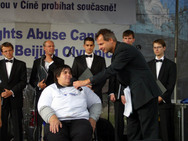 A 18 heures, les activités étaient sur le point de s’achever. M. Lukas Pollert, médaillé d’or au Jeux Olympiques de 1992 et médaillé d’argent de canoë des Jeux Olympiques de 1996 à Atlanta, ont couru en portant la flamme. Grâce à une course de relais par plusieurs médaillés Olympiques Tchèque, la flamme des droits de l’homme est passée par le Mémorial des victimes du communisme, le Parlement tchèque, le Château de Prague ( résidence du Président) jusqu’à l’ambassade de Chine. Alors que des petits points lumineux des bougies décoraient la nuit, les gens ont pleuré pour les pratiquants de Falun Gong persécutés à mort par le régime communiste Chinois.