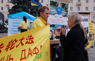 Le 8 septembre 2007, les pratiquants de Falun Gong d'Ukraine sont arrivés à Rivne, une ville située à l'est de l'Ukraine, pour présenter le Falun Gong à la population locale et dénoncer la persécution brutale infligée aux pratiquants de Falun Gong par le parti communiste chinois.