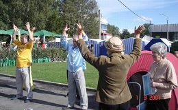 Quelques pratiquants ont fait la démonstration continue des cinq séries d'exercices durant l'événement, et le champ d'énergie pure a exercé son attraction sur la foule. Touchés par l'atmosphère paisible, des passants ont imité les mouvements des exercices tandis que d'autres se renseignaient sur les points de pratique du Falun Gong.