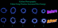 La photographie par bio-energie de la figure 1 est prise sur les doigts d’un pratiquant avant et après une méditation d’une heure. La photographie a été prise par une technologie photoélectrique CV6000 à haute fréquence Kirlian à haut voltage, utilisée communément, avec une caméra Sony DCR-VX2000 NTSC. Les résultats ont montré que la bio-energie dans le doigt d’un pratiquant augmentait de façon significative après avoir médité pendant une heure. Ceci indique une meilleure circulation périphérique. Les dix doigts connectent les méridiens périphériques et les points d’acupuncture. Cette expérience prouve que la pratique ouvre les méridiens du corps et améliore l’énergie vitale. Les résultats fournissent une preuve scientifique des bénéfices de santé de Falun Dafa, des perspectives de la médecine énergétique et de la médecine chinoise