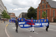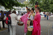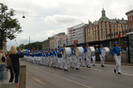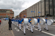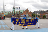 Du 6 au 15 juillet avait lieu à Copenhague un Festival de Jazz auquel participaient des gens du monde entier. Les 7 et 8 juillet les pratiquants danois avaient organisé un rassemblement et un défilé dans Copenhague avec la participation de la Fanfare de la Terre divine européenne. Ils entendaient montrer la beauté de Falun Dafa et marquer les 22 millions de démissions du Parti communiste chinois.