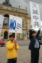 Deux pratiquants prennent la parole et informent les gens de la vague de démissions du parti communiste chinois et de la persécution du Falun Gong