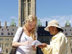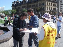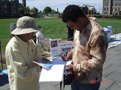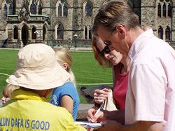 Le premier ministre canadien assistera au sommet de l'APEC (Asia-Pacific Economic Cooperation) en septembre. Des pratiquants de Falun Gong au Canada ont tenu une série d'activités pendant une semaine devant la colline parlementaire et dans d'autres lieux touristiques à Ottawa pour demander au premier ministre d'aider à mettre fin à la persécution du Falun Gong lors des réunions de l'APEC, et de secourir 16 pratiquants de Falun Gong emprisonnés dont les proches sont des citoyens canadiens.