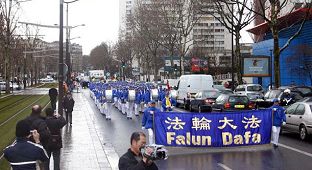 pratiquants de Falun Gong d'une dizaine de pays européens, a défilé à Paris