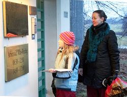 Une jolie petite fille âgée de 10 ans est venue avec toute sa famille d’Avrika. Elle avait écrit une lettre à l’attention de l’ambassade de Chine dans un langage pur et sincère et dessiné une fleur de lotus. Elle demandait la fin de la persécution du Falun Gong, parce que cultiver le Falun Gong apporte une bonne santé. Elle est allée remettre la lettre à l’ambassade avec sa maman.