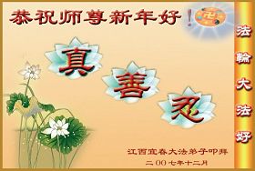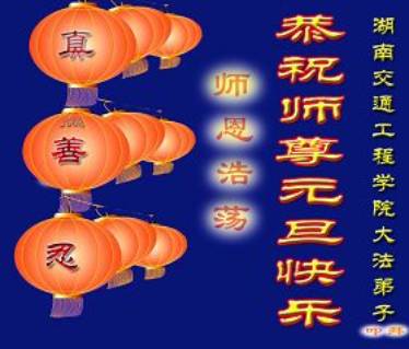 Les pratiquants de Falun Dafa du Collège en Génie de Jiaotong souhaitent respectueusement à notre Vénérable Maitre une Bonne et Heureuse Année!