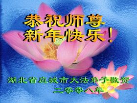 Les pratiquants de Falun Dafa de la ville de Yingcheng, Hubei souhaitent respectueusement à notre Vénérable Maitre une Bonne et Heureuse Année!