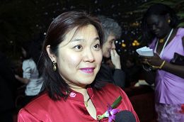 Mme Guo Jinhui, l’une des gagnantes de la médaille d'or du concours de chant mondial 2007 de NTDTV admire les chanteurs qui ont participé au spectacle.