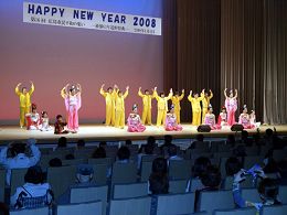 Le seizième évènement de " Bonne année ! " a eu lieu dans la salle de Conférence internationale dans le Parc de la Paix à Hiroshima au Japon, le 4 janvier 2008. Le thème de cette année était " De prier pour la paix, à créer la paix. " Les pratiquants de Falun Gong ont présenté la pratique et les principes de " Zhen Shan Ren " (Authenticité, Compasssion, Tolérance) au public.