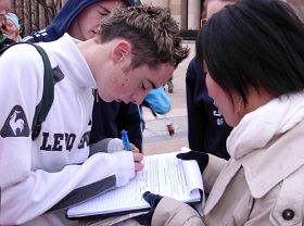 Il y avait des étudiants d'Irlande lesquels, aussitôt appris les faits, ont signé la pétition l'un après l'autre. Lorsque leur guide leur a dit qu'il était temps de partir, ils ont insisté pour signer avant de partir.