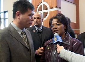 Le public a répondu par une ovation debout prolongée. Après le rassemblement, de nombreux membres de l’assistance y compris des officiels gouvernementaux sont allés serrer la main et ont donné l'accolade aux pratiquants. Certaines personnes ont dit :’’ Après avoir écouté vos histoires, j’ai pleuré. Je prierai pour vous.’’ Certaines personnes ont dit :’’ Vous devez continuer. Mon cœur est avec vous !’’ Certaines autres personnes ont exprimé leurs remerciements pour avoir évoqué le thème du Falun Gong. La plus jeune fille du Dr King, Bernice King a dit : ‘’ Merci d’être venus ici, j’ai apprécié votre discours. Il a gagné la reconnaissance de tous. Nous prierons pour que la Chine bénéficie un jour de la liberté. Soyez ferme dans votre croyance, et levez-vous pour la liberté. Nous serons main dans la main avec vous. Ce jour viendra bientôt.’’