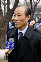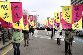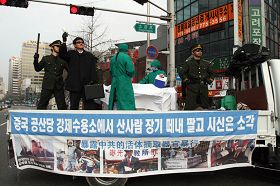 Après avoir appris la vérité au sujet des tortures brutales du PCC sur les pratiquants de Falun Gong, un groupe civique de Corée qui est connu pour sa manière spéciale de manifester, Hwalbindan, a envoyé un représentant pour parler lors du rassemblement. « Nous sommes bouleversés et en colère d'apprendre comment le PCC utilise ses mesures politiques pour torturer brutalement son propre peuple, les pratiquants de Falun Gong. Nous avons appris que depuis des années, le PCC prélève les organes des pratiquants encore vivants et ensuite incinère leurs corps. Les droits de l’homme sont des valeurs universelles. Beijing prévoit accueillir les Jeux Olympiques l’année prochaine. Peut-on permettre cela ? »