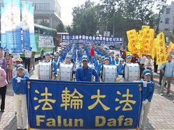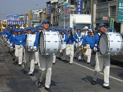 En présentant la fanfare de la Terre Divine de Taïwan, l’animateur du festival a expliqué que la fanfare avait été fondée en octobre 2006 par un groupe de pratiquants du Falun Dafa. Le membre le plus jeune de la fanfare a dix ans et les plus âgés ont plus de 70 ans. Les pratiquants viennent de tous les milieux, et comprennent des médecins, des directeurs d’école, des enseignants, des ingénieurs. La fanfare est composée de plus de 500 membres jouant plus de dix morceaux de musique instrumentale différents. Sous les éloges et la reconnaissance de tous, la fanfare a été invitée à des douzaines d’événements tant à l’intérieur qu’à l’extérieur de Taïwan au cours de ses deux années d'existence. Les membres de la fanfare bénéficient de la pratique du Falun Dafa et ils espèrent apporter la beauté de Dafa a tout le monde au festival. Ils ont aussi souhaité le succès au festival.