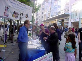 Le 11 octobre 2008 s'est avérée être une belle journée avec un temps frais d'automne. Les pratiquants de Falun Dafa de Stuttgart, une ville industrielle du sud de l'Allemagne, ont mis en place une table d'information devant la gare afin de clarifier les faits à propos de la persécution du Falun Gong en Chine et du crime de prélèvement d'organes sur des pratiquants de Falun Gong vivants. Beaucoup de gens se sont arrêtés pour s'informer.