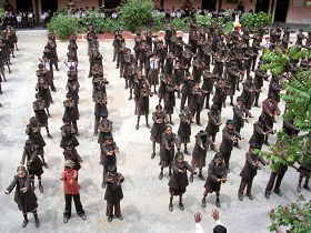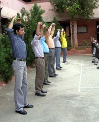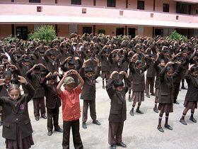 Les étudiants de l’école Jyothi pratiquent les exercices du Falun Gong.