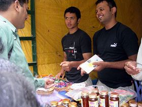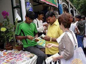 Le 16 août étant un samedi, les écoles étaient donc fermées. Le compagnon pratiquant Chitra nous a amené au plus grand parc fleuri de la ville. Le parc était plein de gens. On m’a dit que plus d’un million de personnes ont visité le Festival des fleurs en date du 15 août. Chitra a marché parmi la foule et a parlé aux gens qui travaillent au kiosque à la fois en indien et en anglais, pour leur présenter le Falun Gong.