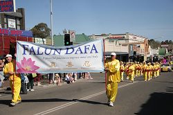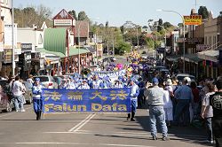 Le défilé est parti de Bong Bong Street vers 14h. La Fanfare céleste et l'équipe des tambourins de ceinture, constitués l'une et l'autre de pratiquants de Falun Gong se sont produits dans le défilé. Les spectateurs ont chaleureusement applaudi leurs performances. Une information présentant la pratique a été distribuée.