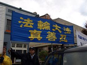Mme Ge, une pratiquante, a dit qu’au cours des trois derniers jours, la voiture de Hu est passée plusieurs fois devant les pratiquants. Il a vu les banderoles. Beaucoup de Chinois et d’Américains ont également eu la chance d'en savoir plus au sujet du Falun Gong.