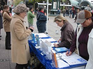 Le 8 novembre 2008, les pratiquants du Falun Gong ont tenu une activité place Kroepke à Hanovre et exposé les crimes de prélèvements d’organes pratiqués sur des pratiquants du Falun Gong de leur vivant sous l'autorité du Parti communiste chinois (PCC). Ils ont appelé les gens à aider à mettre fin à la persécution. De nombreuses personnes ont exprimé leur soutien au Falun Gong.