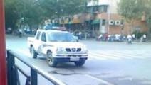 La police patrouille aux coins des rues Yishan et Nandang de l’autre côté du Palais de Justice