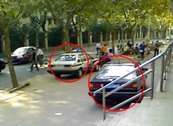 Ce qui suit sont des photos prises sur le site. En plus de voitures de police il y avait des policiers dans deux voitures équipées d’appareil photographique sur les toits surveillant le quartier.