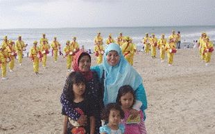 Les touristes sur la plage ont eu la surprise de voir un groupe de gens paisiblement assis en méditation. Leurs mouvements lents semblaient si détachés, si paisibles. Beaucoup fascinés ont pris des photos où se sont assis sur la plage pour regarder, puis ils ont bavardé avec les pratiquants.