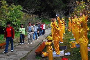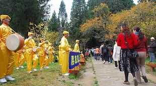Les 22 et 23 novembre, des membres de la troupe de tambours de taille du Falun Dafa sont allés à Alishan (Mont Ali), une destination touristique dans le sud de Taïwan, pour faire connaître la beauté du Falun Dafa et clarifier les faits à propos de sa persécution en Chine aux touristes venus de Chine. En apprenant les faits de cette persécution, de nombreux touristes ont souhaité quitter le Parti communiste chinois (PCC) et ses associations affiliées. Un pratiquant allé à Alishan a dit "Le 22 novembre, 57 touristes chinois ont quitté le PCC. Le jour suivant, il y en a eu 76. Il semble que les gens en Chine comprennent la beauté de Falun Dafa et reconnaissent la nature mauvaise du PCC"