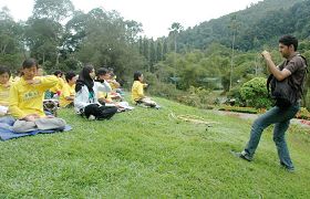 À environ 16 h 00, environ 200 pratiquants se sont rendus au Jardin botanique et ont commencé les exercices de groupe sur la petite colline au centre du parc. Les exercices paisibles du Falun Gong ont attiré l’attention de nombreux résidents locaux et de touristes.