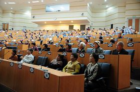 Les pratiquants taïwanais de Falun Gong ont partagé leurs expériences à l'Université nationale de Chung Hsing le 14 décembre 2008. Les photos montrent la principale salle de conférence, une salle de conférence secondaire et une salle pour la traduction simultanée.