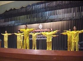 Les pratiquants de Falun Gong ont été invités à faire une présentation spéciale dans le hall principal de l'exposition, où ils ont fait la démonstration des cinq séries d'exercices au son de leur belle musique.