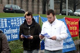 L'Organisation de la Sécurité et la Coopération en Europe s'est réunie à Helsinki les 4 et 5 décembre 2008, avec la participation des Chef et Ministres des Affaires étrangères de plus de 70 pays du monde. Les pratiquants finnois du Falun Gong se sont rassemblés sur le bord de la route près du lieu de réunion et pendant deux jours ont instamment demandé aux participants de prêter une étroite attention aux neuf ans de persécution brutale du Falun Gong par le Parti communiste chinois. (PCC).