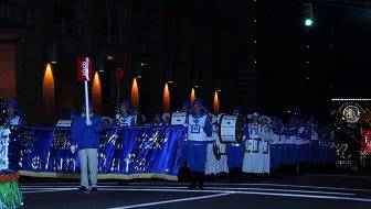 La procession du Falun Gong incluait la Fanfare de la terre divine et un char pour promouvoir la tournée mondiale de la Divine Performing Arts (DPA). Selon Mme Zhang, les pratiquants sont venus de Houston, Dallas et Austin, et ils espèrent que davantage de personnes se renseignent au sujet du Falun Dafa et du spectacle de la DPA par le biais de ce défilé.