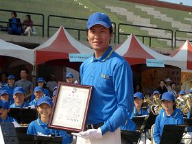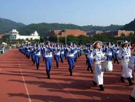 Le 29 novembre 2008, la Conférence des bénévoles de l’athlétisme du sud de Taïwan a eu lieu à l’université Chungshan à Kaohsiung. Tôt dans la matinée, l’université est devenue animée. Près de trois cent pratiquants de Falun Dafa, membres de la fanfare de la Terre divine, sont arrivés du nord, du centre et du sud de Taïwan. La fanfare de la Terre divine a été séparée en deux parties. La fanfare de concert a joué à l’intérieur du stade pendant les manifestations sportives, tandis que la deuxième partie de la fanfare a conduit les drapeaux et les athlètes jusqu'au stade.