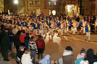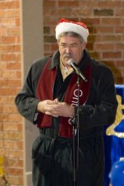 La fanfare a joué sans arrêt lors du défilé qui a duré une heure, et leur prestation a été sincèrement appréciée par les spectateurs. Ensuite, la fanfare de la Terre divine a été invitée à jouer lors de la cérémonie, le Père Noël a pris des photos avec les membres de la fanfare devant la banderole du « Falun Dafa. » L’animateur, les députés et le maire ont remercié la fanfare pour leur excellente prestation