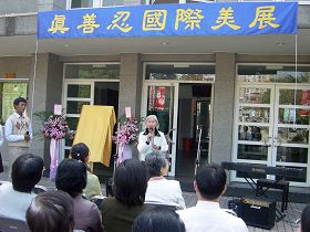 A midi, le 17 janvier 2007, Mme Bai, Secrétaire du District de Wenshan, a pris la parole lors de la cérémonie d’ouverture. Mme Bai a déclaré que l’exposition démontrait, au travers de ces peintures, l’état d’esprit pacifique des pratiquants du Falun Gong. Elle espérait que les gens qui verraient les peintures prêteraient aussi attention aux pratiquants qui sont persécutés en Chine. Mme Chienhui, un professeur d’un groupe d’activités périscolaires, a fait l’éloge des étudiants du Club de Falun Gong pour avoir organisé de si grandes activités avec un effectif si réduit.