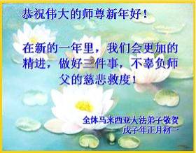 Les pratiquants de Falun Dafa de Malaisie souhaitent une Bonne et Heureuse Année chinoise à notre grand et bienveillant Maître!